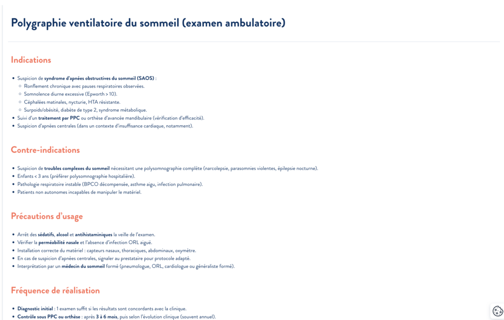 📄 Fiche Pratique sur polygraphie ventilatoire du sommeil à voir sur KitMédical.fr